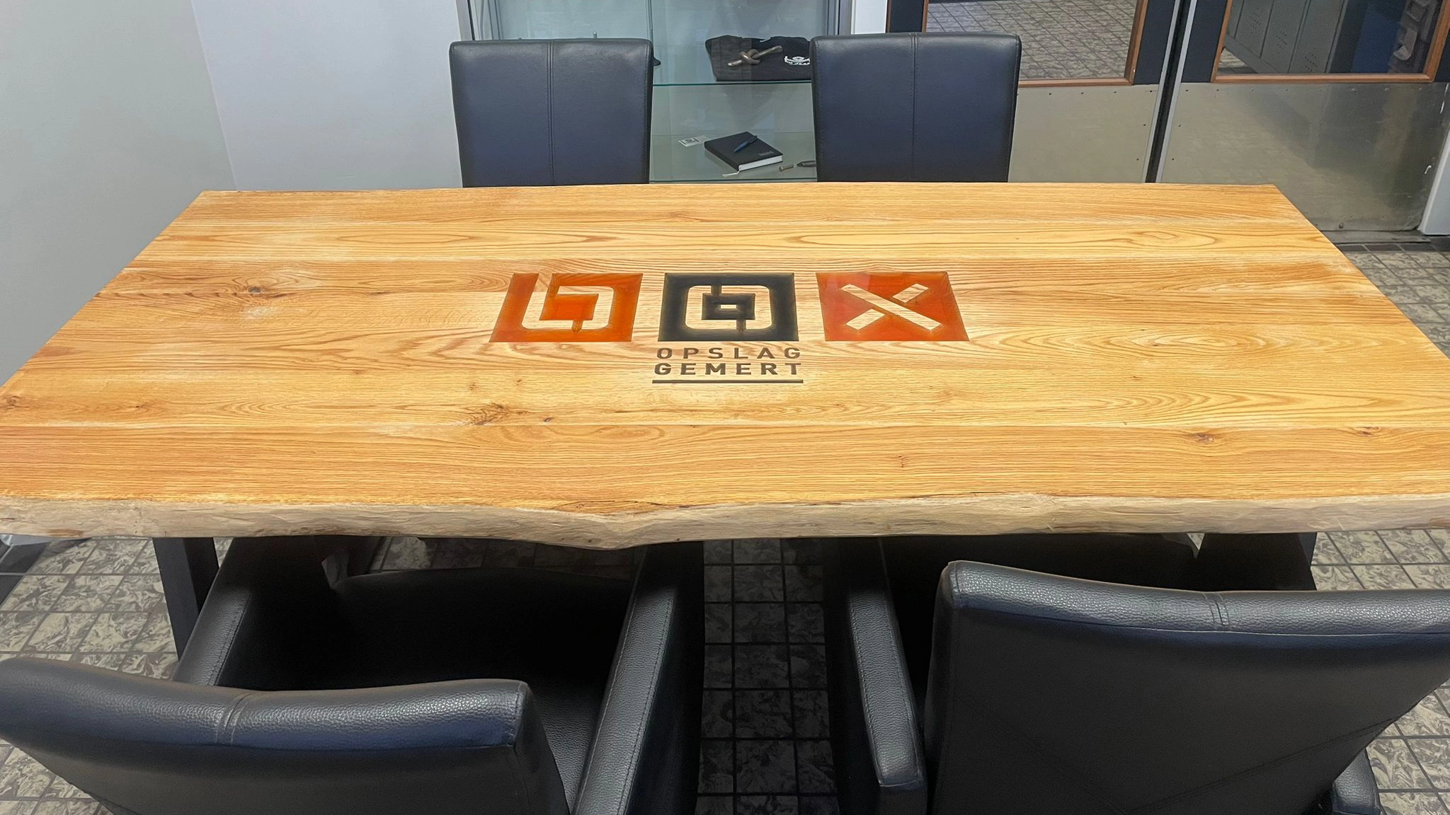 » Bekijk hier hoe een vergadertafel met epoxylogo tot stand komt